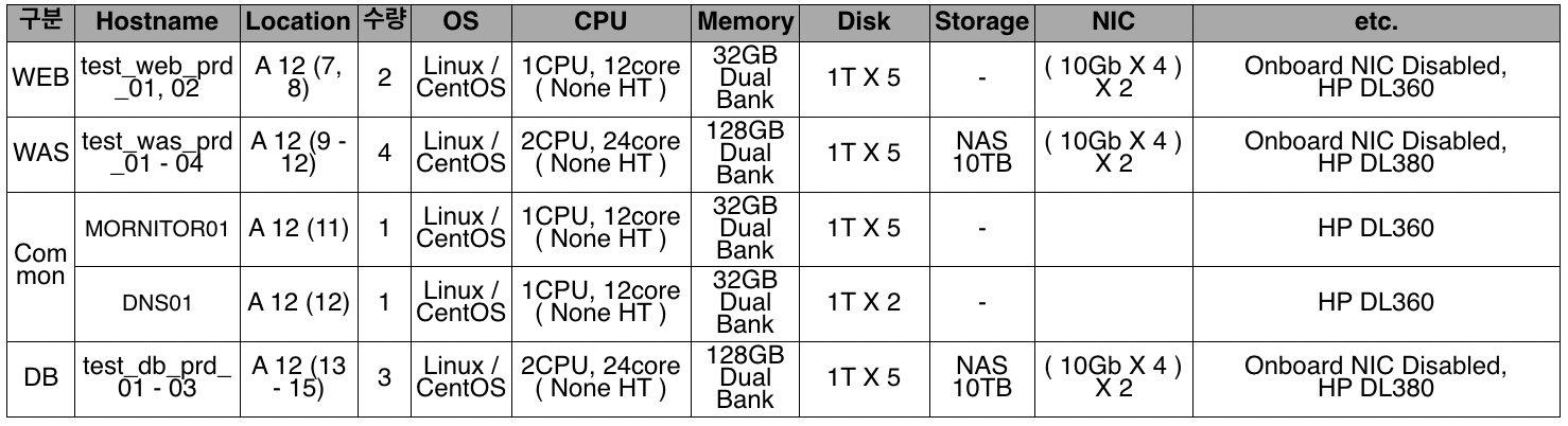 웹의 경우 가상서버의 팜이 미리 준비 되어 있다면 월 사용료를 지불하는 방식으로 구성하는것이 좋고 만약 IDC 에 단독 구성만으로 해야 한다면 CPU와 RAM이 낮은 서버를 WEB으로 구축하고 기존 WEB Server를 WAS Server로 구성하는 방법도 있을수 있겠다. 만약 WEB Server 2기의 구성을 위해 클라우드서버를 따로 구축한다면 더 큰 손실이 발생할수 있으므로 클라우드서버가 없을경우 낮은성능으로 변경을 구성해야 하겠다. 성능을 고려한다면, 아래의 표와 같이 구성이 변경이 될 것이다.